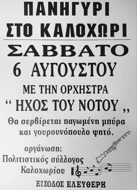 Πανηγύρι το Σάββατο 6 Αυγούστου 2022 στο Καλοχώρι Μεσσηνίας